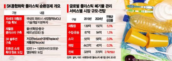 [아시아경제 최대열 기자] SK종합화학이 다 쓴 플라스틱을 재활용하는 기술·설비를 확충하고 친환경 소재사업을 확대하기 위해 2025년까지 5조원을 투자키로 했다. 중장기적으로 회사가 생산한 플라스틱을 모두 재활용해 향후 전 세계적으로 커질 플라스틱 재활용시장에서 주도권을 쥔다는 계획이다. 사명도 ‘지구를 중심에 둔다’는 뜻을 반영해 SK지오센트릭(geo centric)으로 바꾸기로 했다.