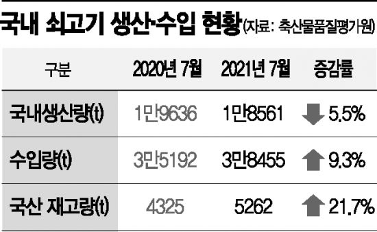 3일 축산물품질평가연구원에 따르면 지난 7월 국내로 수입된 쇠고기는 총 3만8455t으로 지난해 같은 기간 3만5192t보다 9.3% 증가했다. 수입량 중 미국산이 절반 이상인 54.9%, 호주산이 37.7%를 차지했다. 수입산 쇠고기 가격도 크게 올라 미국산 냉동갈비를 기준으로 지난해 7월 100g당 2363원에서 올해 7월엔 2562원으로 8.4% 상승했다.
