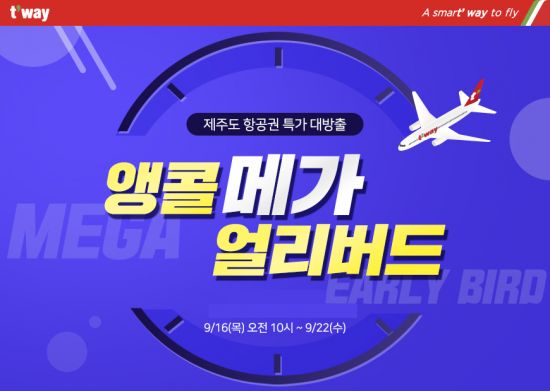 [아시아경제 이동우 기자] 티웨이항공은 16일부터 22일까지 제주도 특가 항공권 구매를 위한 '앵콜 메가 얼리버드' 이벤트을 진행한다고 밝혔다.