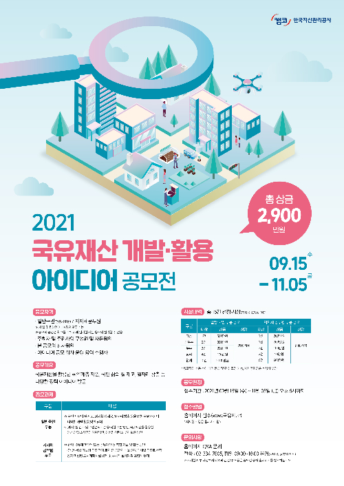 캠코가 주최하는 이번 공모전은 국유재산 개발·활용을 위한 참신한 국민 아이디어와 지방자치단체 접점의 협력사업 발굴을 위해 마련됐다.