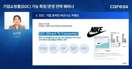 [아시아경제 임춘한 기자] 카페24는 29일 오후 ‘자사몰 통한 판매자-소비자 직접 판매(D2C) 전략 및 성공 사례 웨비나’를 성료했다고 밝혔다.