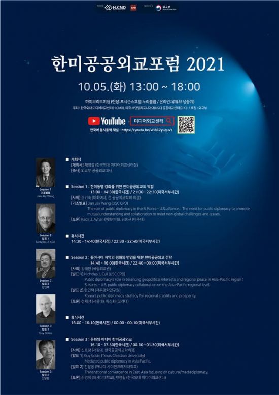 [아시아경제 우수연 기자]한국외대 미디어외교센터(H.CMD)가 급변하는 국제질서와 동북아 평화안보 방안을 논의하기 위해 '한미공공외교포럼 2021'을 개최한다고 2일 밝혔다.