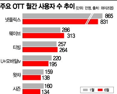 반면 해외 사업자에 비해 매출이 적고 적자 상태인 국내 OTT 사업자들은 매년 망 사용료를 꼬박꼬박 내고 있다. 지난해를 기준으로 한 영업이익 적자는 웨이브 169억원, 티빙 61억원, 왓챠 126억원 규모다. 업계 관계자는 "해외사업자의 경우 국내 사업을 통해 큰 매출을 내고 있으나 사업 경영에 따르는 망 사용료, 세금 등을 부담하지 않고 있다"며 "자본력 차이는 물론 비용면에서까지 차별적 경쟁 환경에 놓인 것은 역차별"이라고 비판했다.