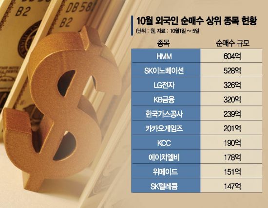 [아시아경제 박지환 기자] 외국인 투자자들이 이달 들어 코스피에서 2거래일만에 1조원에 가까운 주식을 내다팔면서 HMM, SK이노베이션, LG전자 등 일부 종목에는 지갑을 활짝 열고 있다. 업황 호조에 따른 수혜가 예상되는 종목과 실적 대비 주가 조정이 심한 종목에 외국인들이 투자에 나서고 있다는 분석이 나온다.