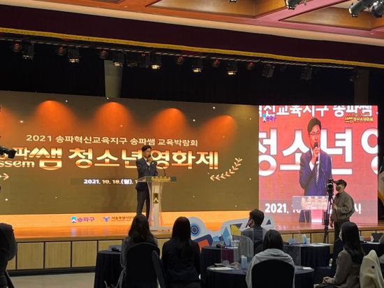 우선, 18일에는 ▲방이초, 아주중 학생들의 축하공연으로 시작한 개막식 ▲참여자들과의 소통 시간 ▲온라인 마을교재 시상식이 진행됐다. 또, ▲청소년들의 재기발랄한 모습을 담은 ‘송파쌤 청소년 영화제’ 시상식 ▲영파여중 학생들이 참여한 ‘RC카 만들기 수업 리포터’ 영상 ▲송파혁신교육지구 활동 성과발표가 이어졌다.