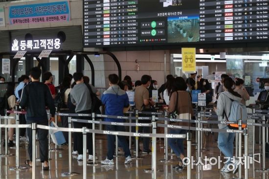 추석 연휴를 앞두고 서울 등 수도권을 중심으로 코로나19 확산세가 가팔라지고 있다. 16일 서울 강서구 김포공항 국내선 청사가 이용객들로 북적이고 있다. /문호남 기자 munonam@