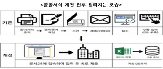 행안부는 개편되는 공공서식 서비스를 12일부터 시작하고 연구보고서, 보도자료, 채용공고문, 위원회결정문 등은 내년 상반기까지 단계적으로 대국민 서비스를 제공할 예정이다. 행정내부문서도 문서 작성방식을 개방형 포맷으로 전환하고 문서정보에 키워드 등을 입력하도록 해 데이터 친화적으로 개편한다.