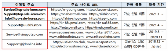 소비자들은 유튜브나 사회관계망서비스(SNS) 광고로 해당 사이트를 접한 경우가 많았다. 이들 사이트는 사업자 등록번호 조회 결과 실제 사업자 정보와 사이트상의 사업자 정보가 달랐고 회사 소개 내용이 매끄럽지 않은 번역투 문장이라는 공통점이 있었다. 최근에는 '@support@uu365.store'라는 이메일 주소를 사용하는 사기 의심 사이트와 관련한 소비자 피해도 6건 접수됐다.