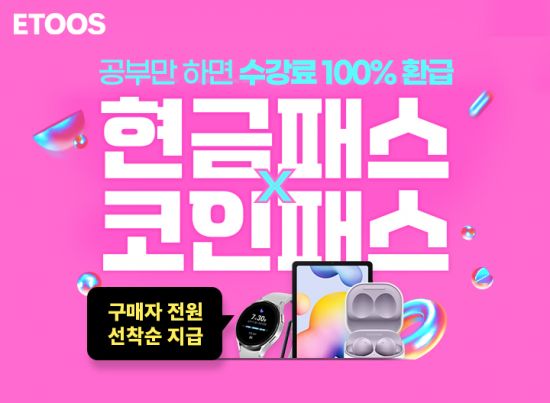 [아시아경제 한진주 기자] 이투스가 대학 합격 인증 없이 일정 시간 강좌 수강을 달성하면 수강료를 분기별로 환급해주는 ‘이투스 패스’ 상품을 출시했다.