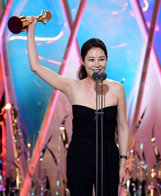 여성의 연대를 그린 영화 '세자매'로 여우주연상을 품에 안은 문소리는 "저와 김선영, 장윤주 모두 딸을 뒀다. 딸들이 폭력의 시대를 넘어 당당하게 웃으면서 편하게 살길 바라는 마음을 담은 영화이고, 그 마음이 전해지길 바랐다. 아까 좋은 무대를 보여준 홀리뱅 언니들. 그런 언니들이 있어서 세상이 더 좋아지는 거 같다. 더 멋진 여자들 이야기 나오는 영화로 여러분을 찾아뵙겠다"고 말해 남다른 의미를 안겼다.