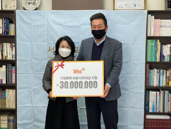 [아시아경제 문혜원 기자] bhc치킨이 가정폭력으로부터 피해를 입은 이주여성의 자립 지원금을 전달했다고 21일 밝혔다.