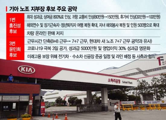 이번 현대차·기아 노조 지부장 선거는 파격적인 공약 대결로 압축된다. 향후 사측과의 마찰이 불가피한 대목이기도 하다. 특히 윤 후보가 공약으로 내세운 7+7근무제는 최근 선출된 현대차 새 노조의 7+7근무제와 유사해 향후 공동전선을 이룰 가능성도 있다.