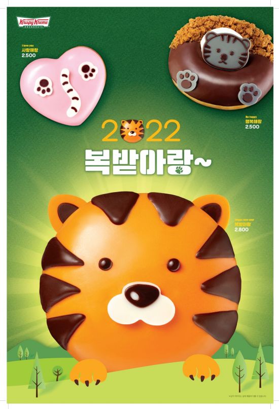 검은 호랑이띠의 해인 임인년을 맞아 출시한 ‘복받아랑’ 신제품은 호랑이를 캐릭터로 형상화해 표현했다. 각각 부드러운 도넛에 ▲헤이즐넛 초코를 넣은 ‘복받아랑’ ▲딸기우유 크림을 넣은 하트모양의 ‘사랑해랑’ ▲초콜릿 아이싱으로 토핑해 진한 달콤한 맛의 ‘행복해랑’ 총 3종이다.