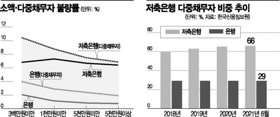 저축은행을 주로 이용한 다중채무자의 불량률이 높았다. 저축은행에서만 다중채무를 진 차주의 불량률은 9.4%였다. 1금융과 저축은행에서 대출을 받은 차주(7.1%)나 타 2금융도 함께 이용한 차주(6.7%)의 불량률보다 2~3%포인트가량 높다.