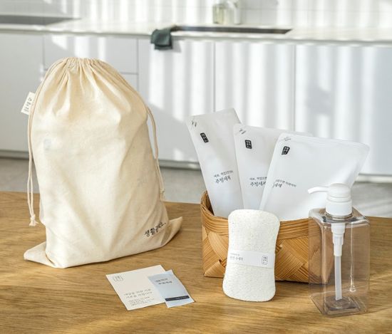 이번 신제품에는 천연 수세미와 면 주머니도 포함되어 있다. 오이과 식물인 수세미를 건조해 만든 천연 수세미는 미세 플라스틱 걱정 없이 사용이 가능하고, 소량의 세제로도 기름기를 완벽하게 닦아낼 수 있다. 면 주머니는 통기성이 좋고 수분을 잘 흡수해 채소를 담아 냉장고에 보관하는 용도로 사용하는 등 일상생활에서 다양하게 재활용할 수 있다.