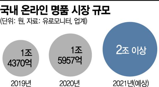 온라인 명품시장은 기존 유통 대기업뿐만 아니라 머스트잇, 트렌비, 발란 등 온라인 명품 전문 플랫폼이 가세하며 급성장하고 있다. 시장조사업체 유로모니터에 따르면 국내 온라인 명품시장 규모는 2015년 1조455억원 수준에서 2019년 1조4370억원, 2020년 1조5957억원으로 성장했다. 업계는 지난해 국내 온라인 명품시장 규모가 2조원을 넘어섰을 것으로 예상했다. 유통업계 관계자는 "온라인 명품시장 성패는 가품 이슈에서 얼마나 자유로울 수 있는 지가 갈라놓을 것"이라며 "이 부분에서 신뢰를 담보할 수 있는 채널을 중심으로 성장이 이뤄질 것"이라고 말했다.