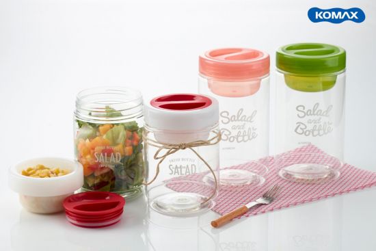 뚜껑 위에 포크가 부착된 밀폐용기로 따로 수저통을 챙기지 않아도 되어 도시락 용기로 제격이다. 몸체에 분리형 칸 용기가 3개 들어있어 샐러드, 과일, 빵 등을 분리 보관할 수 있으며, 필요에 따라 칸 용기를 넣거나 빼 원하는 대로 활용 가능하다. 1.1ℓ의 넉넉한 사이즈로 샐러드, 샌드위치, 과일 등 부피가 큰 음식도 충분히 담을 수 있다. 비스페놀-A(BPA)가 무검출된 100% 국내 생산 제품으로 안심하고 사용 가능하다.
