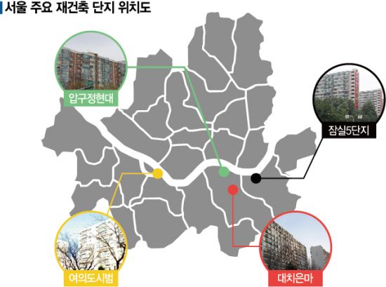 17일 정비업계에 따르면 여의도 시범, 압구정 현대, 잠실주공5단지, 대치 은마 등 서울의 대표적인 재건축 단지들이 일제히 사업 속도를 높이고 있다. 이들 단지는 한강변 또는 서울 핵심 입지에 위치해 있어 ‘서울 재건축 최대어’라는 수식어가 항상 뒤따르는 아파트들이다.