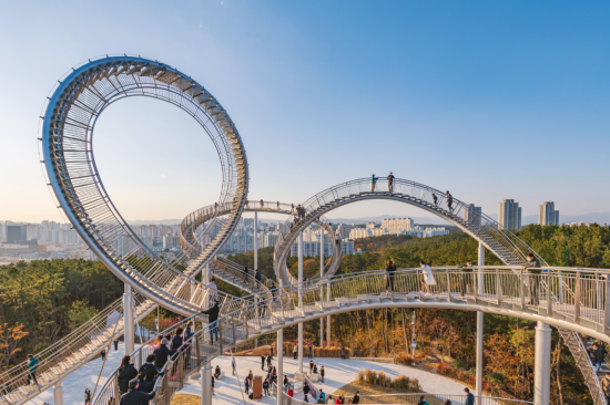 [아시아경제 정동훈 기자] 포스코가 경북 포항 환호공원에 설치한 체험형 조형물 '스페이스 워크'가 포항의 새로운 랜드마크로 떠올랐다.
