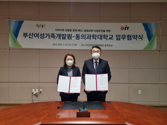 [아시아경제 영남취재본부 황두열 기자] 동의과학대학교와 부산여성가족개발원이 지난 16일 ‘지역사회 성평등 문화 확산과 평생교육 사업 추진을 위한 업무협약’을 체결했다.