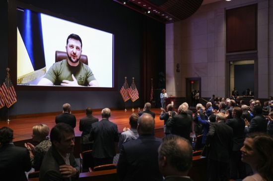 전날 미국 의회에서는 1941년 일본의 공격을 받은 하와이의 진주만 공습, 2001년 9·11 테러를 기억해 달라고 호소하기도 했다. 젤렌스키 대통령은 "악마가 당신의 도시와 독립된 영토를 전쟁터로 만들고자 했던 끔찍한 날을 기억하라. 무고한 사람들이 공격을 당했다"면서 "아무도 예상하지 못했던 것처럼, 당신도 막을 수 없었다. 우리나라는 매일 똑같은 경험을 하고 있다"고 외쳤다. 그는 조 바이든 미 대통령에게 통역 없이 직접 영어로 "세계의 지도자가 돼 달라"고 요청하기도 했다.