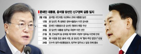 윤 당선인은 "원칙적으로 차기정부와 다년간 있을 사람을 마지막에 인사조치 하는 것은 바람직하지 않다"고 맞서고 있다. 다만 문 대통령이 윤 당선인과 조건 없는 회담을 촉구해, 돌파구가 마련될 가능성도 점쳐진다. 김은혜 당선인 대변인은 갈등상황과 관련해 "국민이 걱정하는 부분을 잘 안다"며 "걱정하지 않도록 더 노력하겠다"고 밝혔다.