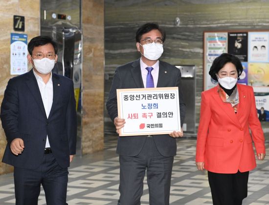 송언석 원내수석부대표와 국회 행정안전위원회 소속 김형동 의원은 25일 국회 의안과에 노 위원장에 대한 사퇴 촉구 결의안을 제출했다.