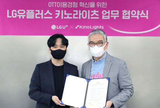 LG유플러스는 키노라이츠와 ‘OTT 활성화를 위한 솔루션 협력 업무협약(MOU)’을 체결했다고 6일 밝혔다. 서울 용산구 소재 LG유플러스 사옥에서 진행된 협약식에는 LG유플러스 정수헌 컨슈머부문장(부사장)과 양준영 키노라이츠 대표 등이 참석했다.