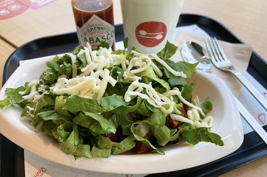 한 숟가락 떠 먹어 보았다. 와우! 탄성이 절로 나오는 맛이다. 매콤하면서 동시에 새콤하고, 보드랍다. 치킨의 매운 맛 위로 살사와 사워 크림이 이국적인 맛을 내고, 치즈와 콩이 부드럽고 고소하게 감싼다. 로메인과 토마토 살사는 신선하고 기분 좋은 느낌을 더한다. 부리토보다는 훨씬 산뜻해서, 분명 밥과 콩이 들어 있지만 샐러드에 가까운 맛이다.