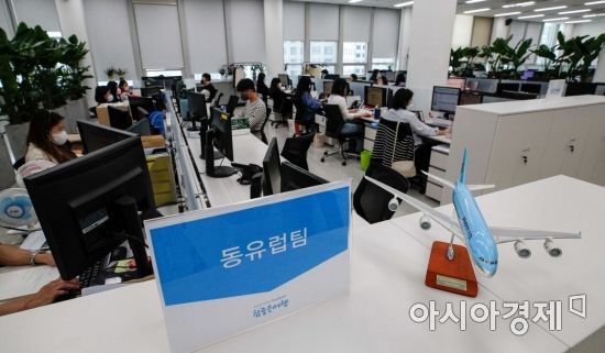 최근 정부가 방역 규제를 완화하며 국제선 항공편도 정상화 조짐을 보이고 있는 12일 서울 중구 참좋은여행 본사에서 상담원들이 여행 예약 관련 상담을 하고 있다./강진형 기자aymsdream@