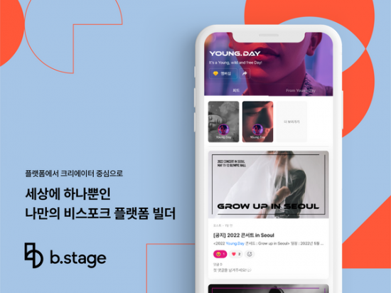 글로벌 팬덤 비즈니스 전문 스타트업 비마이프렌즈가 크리에이터를 위한 비스포크 플랫폼 빌더 ‘비스테이지(b.stage)’ 서비스를 정식으로 시작하고, 크리에이터가 콘텐츠는 물론 플랫폼까지 기획, 설계, 구축, 소유하는 진정한 크리에이터 이코노미 시대를 견인한다고 밝혔다. 오늘부터 전 세계 누구나 비스테이지를 이용해 세상에 하나뿐인 나만의 플랫폼을 구축할 수 있다.