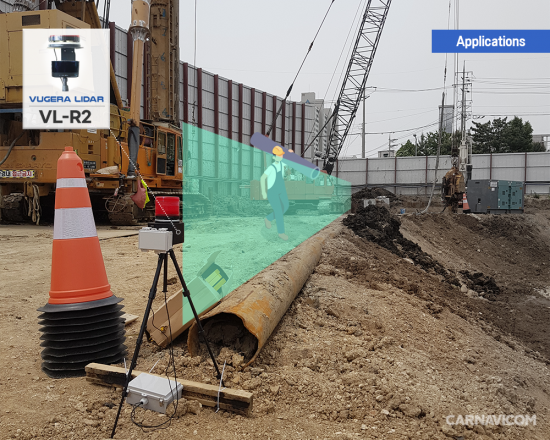 카네비컴은 최근 산업재해 예방을 위한 라이다 경고 장치인 ‘VL-R2’를 양산했다. 이 기기를 건설현장에 설치해두면 작업자가 무의식적으로 절벽 근처로 가게됐을 때 경고음을 보내 추락을 예방할 수 있다. 또 건물 내 가스나 인화물 등 위험 구역에 대한 접근을 감지해 부주의에 의한 사고도 미리 막을 수 있다. 횡단보도에 설치할 경우 신호를 기다리는 보행자 앞에 일종의 가상벽을 설치하는 효과를 줘 자동차 사고 위험을 미리 경고 할 수도 있다.