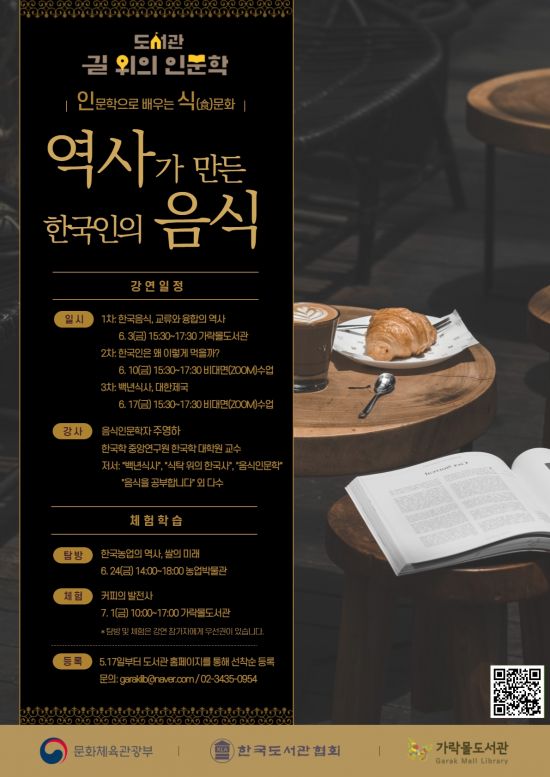 가락몰 도서관은 식(食)문화 특화 도서관의 전문성을 앞세워 지난 2017년부터 꾸준히 사업 대상으로 선정돼왔으며, 올해는 '인식 : 인문학으로 배우는 식문화' 라는 주제로 △역사적 사건들이 만들어낸 음식 이야기 ▲동화, 소설, 에세이에 등장하는 음식들 ▲음식 문화와 환경철학 등 다양한 프로그램을 선보일 예정이다.