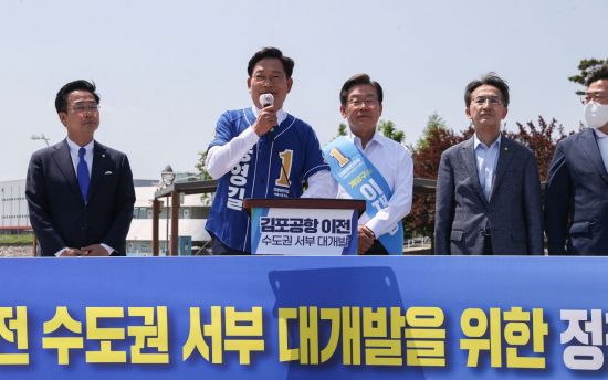31일 업계에 따르면 지난 27일 송영길 더불어민주당 서울시장 후보는 계양을 국회의원 보궐선거에 출마한 이재명 민주당 상임고문과 함께 김포공항의 인천국제공항 이전·통합 등의 내용을 담은 정책협약서를 체결했다.