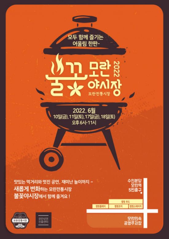 시 관계자는 "모란 불꽃 야시장 시범운영 기간에 부족한 부분이 있으면 보완하고, 홍보를 강화해 오는 9월 정식 개장할 계획"이라면서 "모란 역세권을 활성화해 지역경제를 살리고 상생형 축제로 승화해 나가겠다"고 전했다.