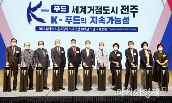 [전주=아시아경제 호남취재본부 김한호 기자] 전주시는 유네스코 음식창의도시 지정 10주년을 기념하는 ‘K-푸드 세계 거점도시 전주 국제포럼’을 16일 개최했다.