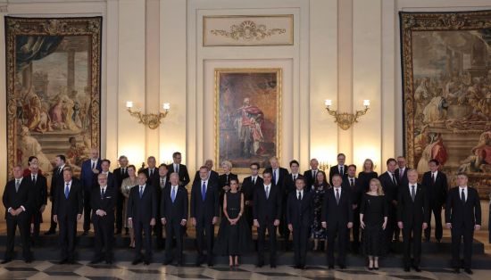 (마드리드(스페인)=아시아경제 배경환 기자, 유인호 기자, 이기민 기자) 윤석열 대통령이 기시다 후미오 일본 총리를 28일(현지시간) 스페인 국왕인 펠리페 6세가 주최한 환영 갈라 만찬에서 처음으로 대면했다.