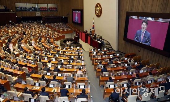 여소야대 현실을 감안해 야당과의 협치도 잊지 않았다. 권 원내대표는 "대한민국은 대전환의 시기에 직면했다"며 "박정희 대통령의 산업화와 김대중 대통령의 정보화에 이어 대한민국의 세 번째 도약은 정부와 국회, 여야의 협치를 통해서 가능할 것"이라고 말했다.