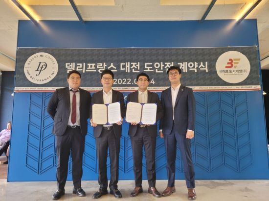 프랑스 베이커리 브랜드 델리프랑스가 지난 14일 경기도 광주 홍보샵에서 비에프도시개발(주)과 대전시 도안점 계약식을 진행했다고 전했다.