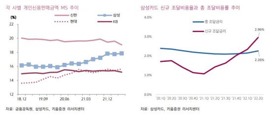 서영수 키움증권 연구원은 "금리 인상과 부동산 시장 침체, 정부 규제 강화는 분명히 카드사에 악재"라면서도 "그러나 위기 국면에서도 경쟁력을 지닌 회사는 위기를 기회로 전환하고 우량 기업으로 전환할 수 있다"고 전했다.