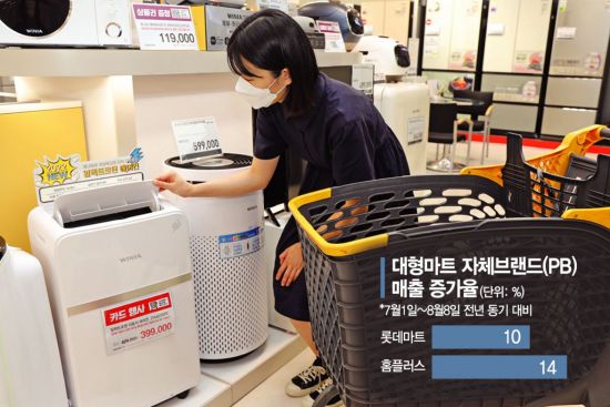 [아시아경제 임춘한 기자] 최근 고물가에 소비 지출을 줄이려는 소비자가 늘면서 유통업계에서 자체브랜드(PB) 상품이 큰 인기를 끌고 있다. 대형마트와 편의점은 먹거리부터 생활용품까지 영역을 확대해나가며 시장 공략에 나서고 있다.