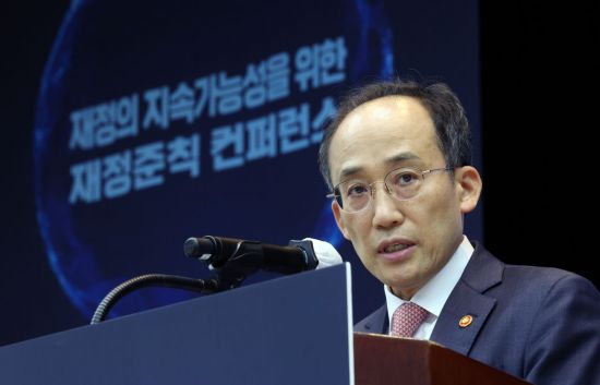 추 부총리는 '농부는 굶어 죽어도 씨앗은 베고 죽는다'는 속담을 인용하면서 "지금 당장이 힘들다고 우리 자식 세대에게 텅 빈 곳간을 물려줄 수는 없다"며 "우리가 미래 세대를 위한 씨앗을 다 써버리지 않도록 우리 스스로가 곳간의 문을 엄격히 단속하고자 하는 것이 바로 재정준칙"이라고 강조했다.