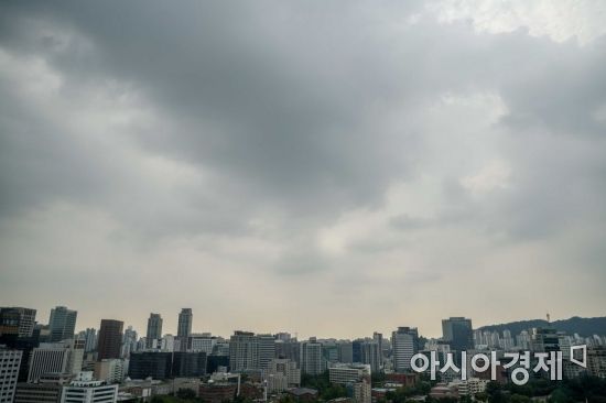 전국적으로 구름 많은 날씨가 이어지고 있는 18일 서울 중구 태평로에서 바라본 도심 하늘에 먹구름이 관측되고 있다./강진형 기자aymsdream@
