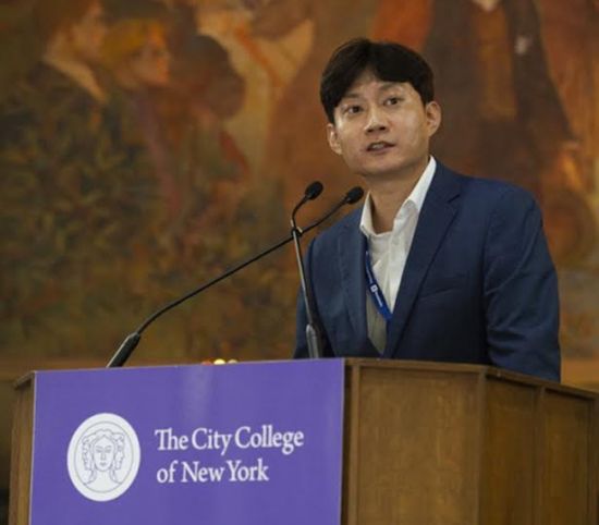 이기원 와이브레인 대표가 미국 뉴욕에서 열린 2022년 뉴로에르고노믹스 및 NYC 뉴로모듈레이션 학회에서 우울증 전자약 마인드스팀의 기술인 경두개 직류자극(tDCS)에 대해 발표하고 있다.