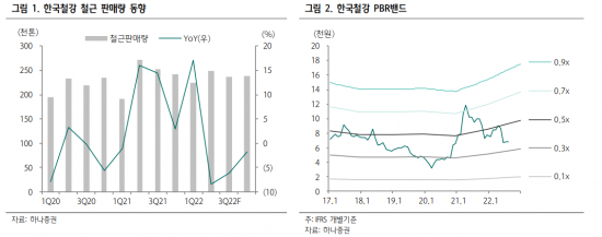 박성봉 하나증권 연구원은 “아파트 매매가격도 지속해서 하락하고 있고 주택 착공 지표도 부진하며 미분양도 증가하고 있기 때문에 철근 수요가 둔화될 가능성이 높다”며 “9월부터는 한국특강의 칠서제강소가 상업생산에 들어갈 예정으로 국내 철근 수급 악화 요인으로 작용할 전망”이라고 말했다.
