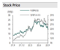 이랜텍은 2분기 연결기준 매출액이 2773억원, 영업이익 209억원을 달성했다. 주요 사업부인 스마트폰 케이스는 매출액 734억원, 전자담배 기기 937억원 등을 시현했다. 스마트폰 시장 둔화 및 물류 관련 일회성 비용으로 인해 영업이익이 다소 시장 기대를 하회했으나, 기저효과와 신사업 호조로 인해 전년대비 424% 증가했다. 주요 신사업인 가정용 ESS는 6월부터 본격 가동이 시작돼 하반기에는 온기 반영될 예정이다. 현재 유럽에서 에너지난이 지속되고 있어 가정용 ESS 수요가 급증하고 있다. 올해 말부터 2번째 라인을 가동할 계획으로, 내년부터는 2개 라인에서 ESS 배터리 팩을 생산할 예정이다. 2022년부터 휴대폰용 케이스 매출 비중이 기존 50%대에서 30%로 하락할 전망으로, 향후 배터리 관련 기업으로 변모가 기대된다.