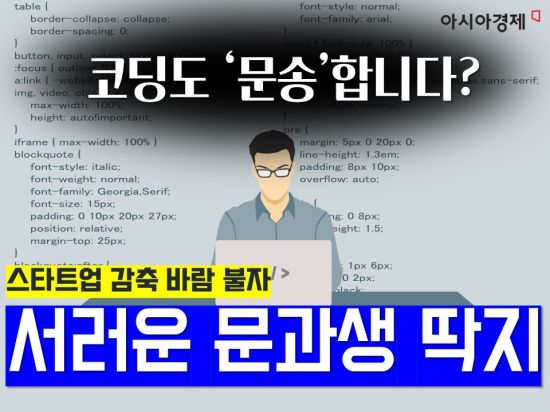 [아시아경제 임주형 기자, 송현도 인턴기자] #인문대학 졸업 예정자 A씨(26)는 요즘 취업 문제로 근심이 가득하다. '문사철(문학·역사학·철학)' 전공자인 그는 최근 8주짜리 단기 코딩 교육 프로그램도 수강했다. 조금이라도 일자리 시장에서 우위를 점해 보려는 노력이다. 그러나 한 번 '문과생' 꼬리표가 붙은 그에게 IT 개발직 취업은 여전히 요원하다. A씨는 "먼저 IT 회사에 취직한 친구 말을 들어보니 요즘 회사들은 문과 출신을 그리 반기지 않는다더라"며 "졸업이 코앞인데 어떻게 먹고 살아야 할지 막막하다"라고 토로했다.