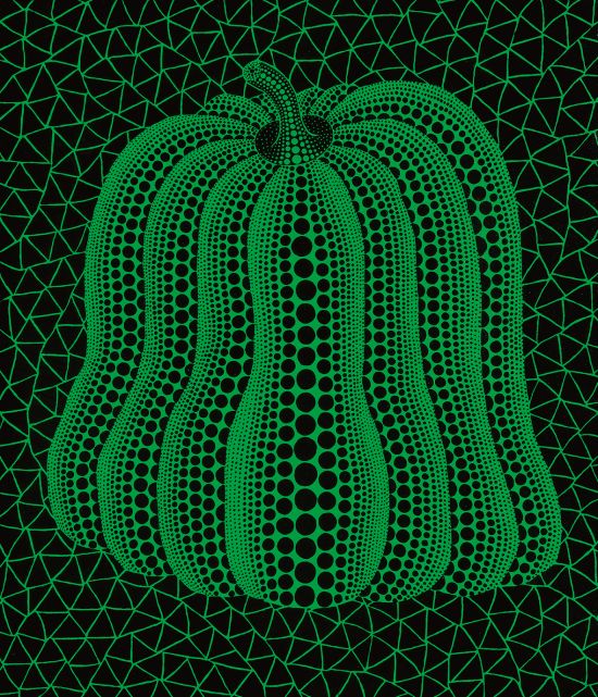 쿠사마 야요이의 초록색 '호박'은 무한히 뻗어가는 그물망의 배경 위에 성장과 활력을 상징하는 녹색으로 그려진 호박이 등장한다. 앞서 지난 8월 서울옥션 경매에서 22억에 낙찰된 빨간 '호박'과 유사한 작품으로 컬렉터의 관심을 끌고 있다.