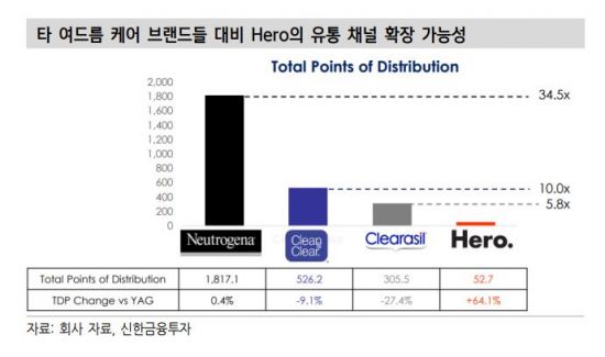히어로는 티앤엘을 통해 트러블 케어 브랜드 '마이티 패치'를 공급받고 있다. C&D는 7억달러(1조원)에 달하는 글로벌 여드름 케어 시장에서 패치 제품군이 약 18%를 차지하고 있다. 여기에 여드름 케어 시장은 더욱 성장할 것으로 전망되면서 C&D가 미국시장에 한정됐던 마이티 패치의 진출 지역을 확대할 것으로 기대된다.