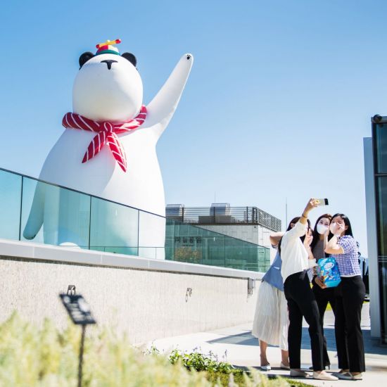 옥상공원에도 푸빌라 캐릭터를 활용한 휴식공간과 포토존을 만들었다. 17m 크기의 초대형 푸빌라 조형물이 설치돼 친구, 연인, 가족과 함께 인생샷을 남길 수 있다. 주말에는 푸빌라 댄스 퍼포먼스와 퍼레이드도 매장 곳곳에서 선보인다. 푸빌라 인형의 탈을 쓴 5명의 댄서가 인기 가수들의 커버댄스 등 다양한 볼거리를 펼친다.